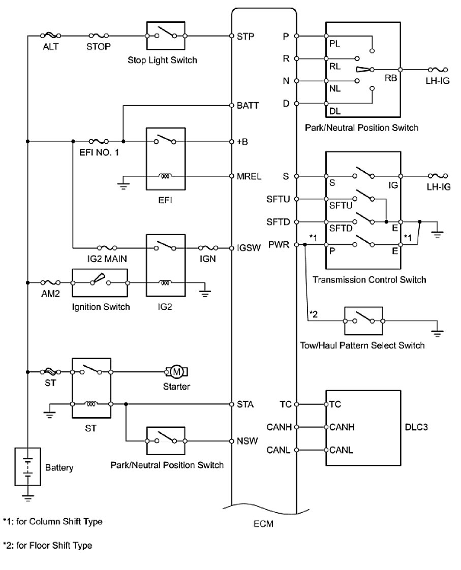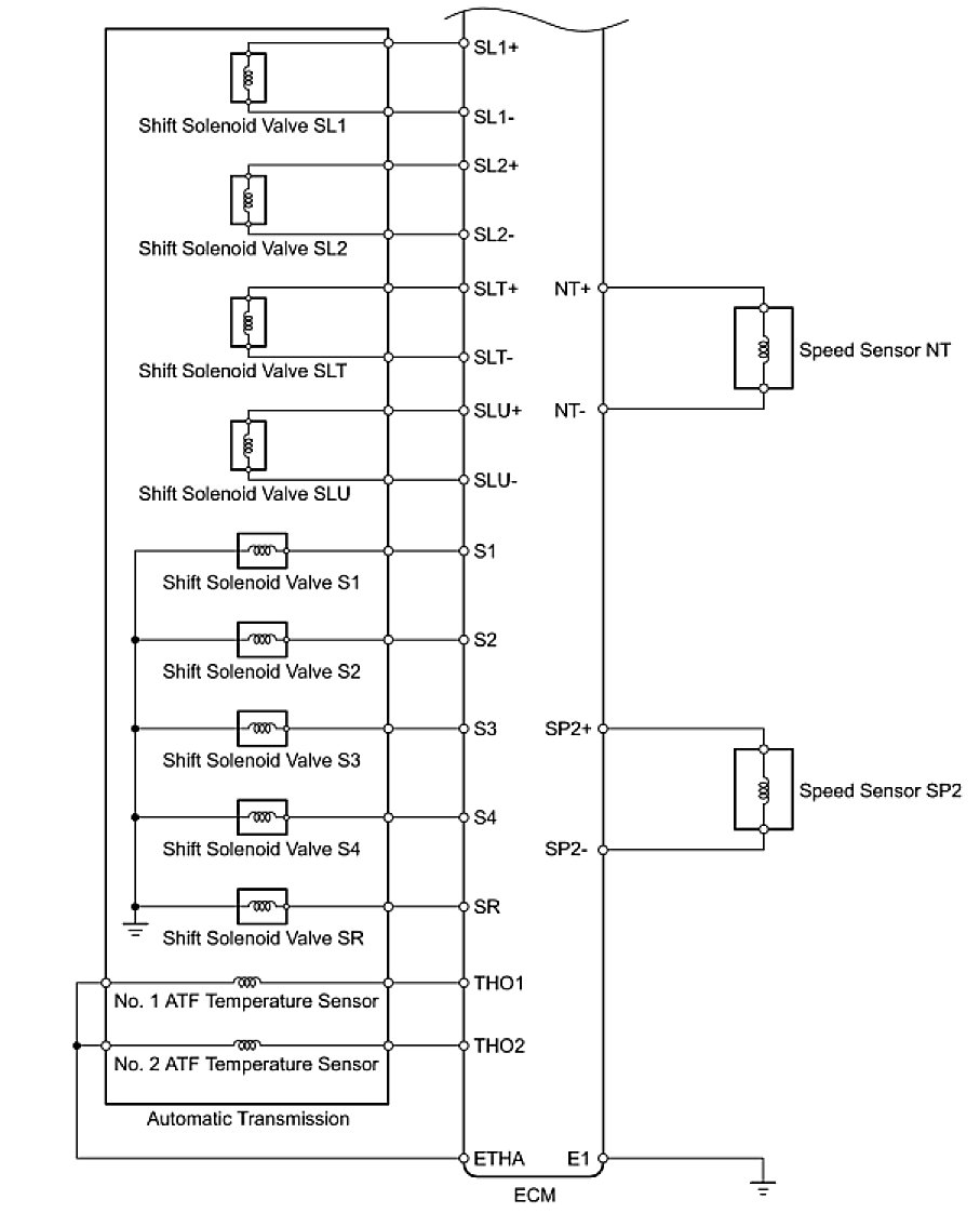 The configuration of the electronic control system in the AB60E automatic transmission is as shown in the following chart.