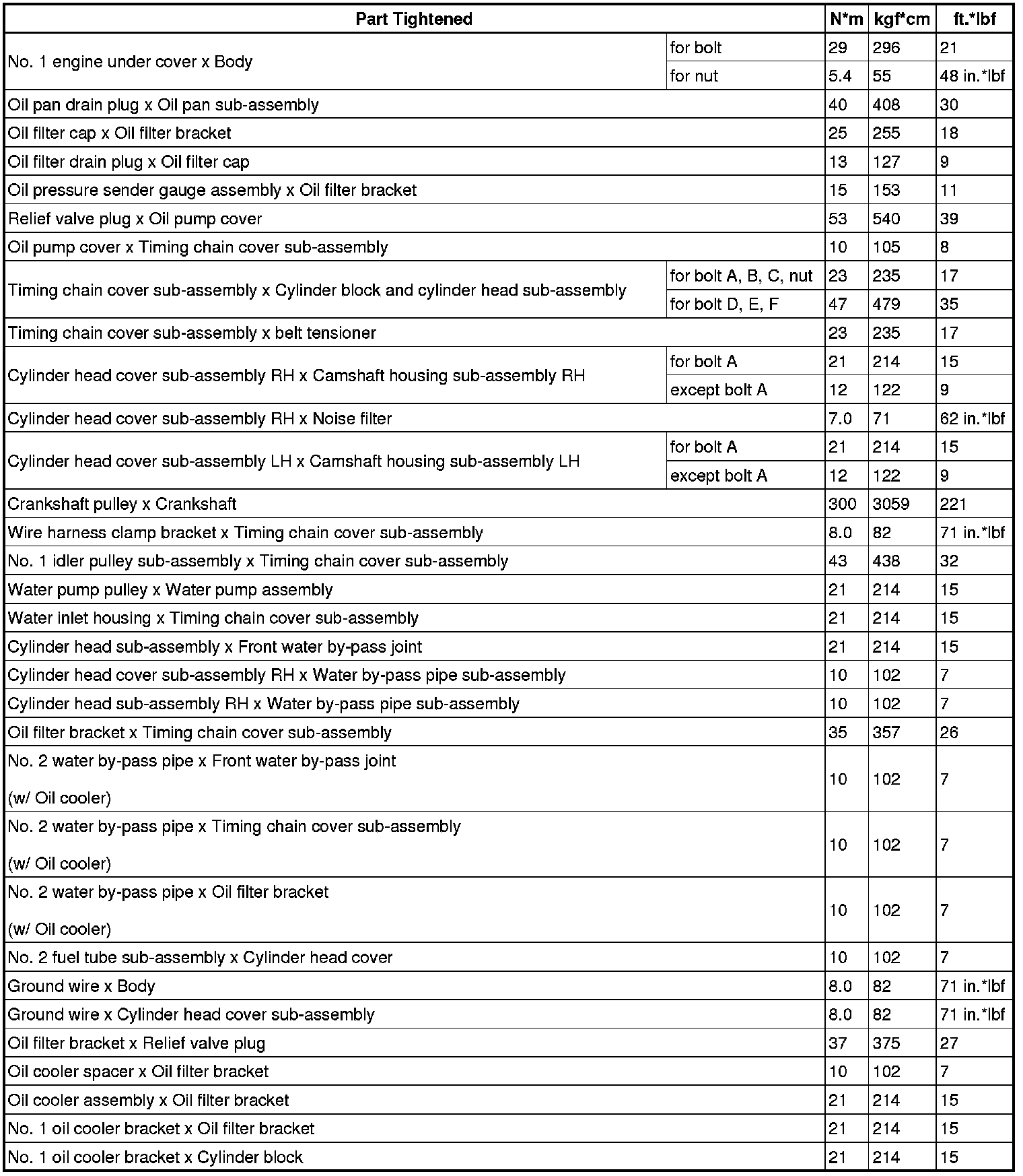 TORQUE SPECIFICATIONS