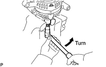 (d) To loosen the pulley nut, turn SST 1-A in the direction shown in the illustration.