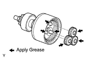 (a) Apply high-temperature grease to the starter pinion drive lever, as shown in the illustration.