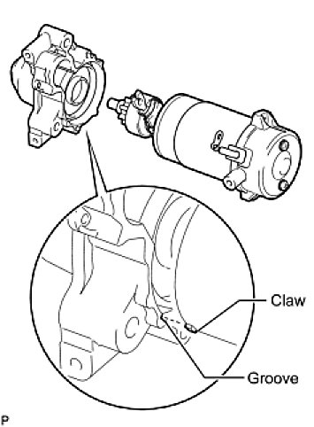 (c) Align the claw of the starter yoke with the groove inside the starter drive housing.