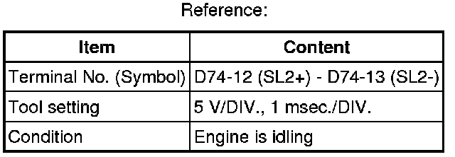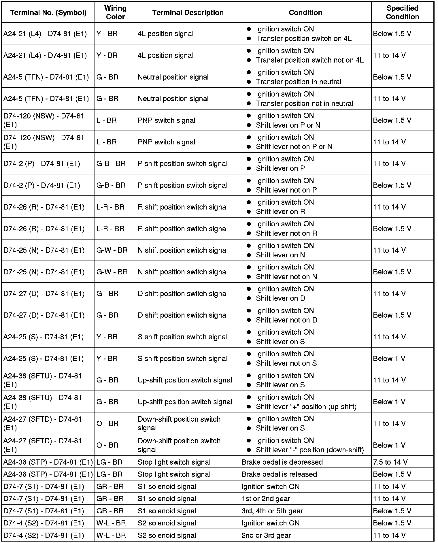 In the table, first follow the information under "Condition". Look under "Terminal No. (Symbol)" for the terminals to be inspected. The standard voltage between the terminals is shown under "Specified Condition".
