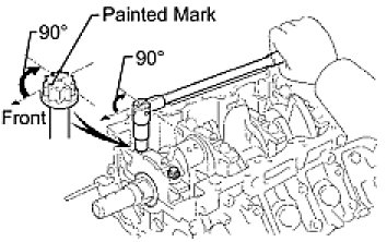- Tighten the crankshaft bearing cap bolts another 90° as shown in the illustration.