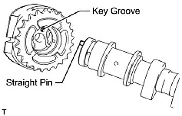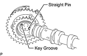 - Do not forcefully push in the camshaft timing gear. This may cause the camshaft knock pin tip to damage the installation surface of the camshaft timing gear.