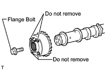 Do not loosen or remove the 4 bolts shown in the illustration. If any of them are loosened or removed, the backlash of the gear in the timing tube will go out of adjustment. In this case, replace the camshaft timing exhaust gear assembly with a new one.