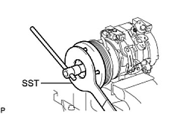 (b) Using SST, hold the magnet clutch hub.