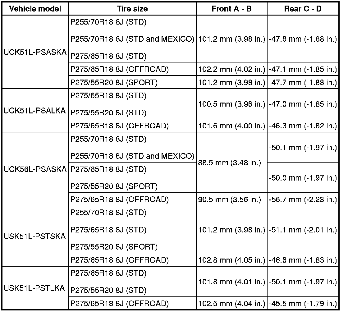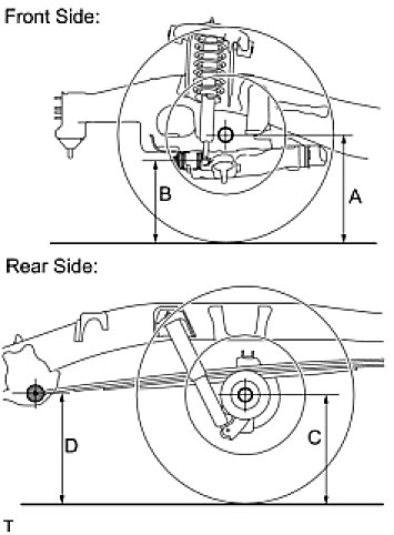 NOTE: Before inspecting the wheel alignment, adjust the vehicle height to the specification.