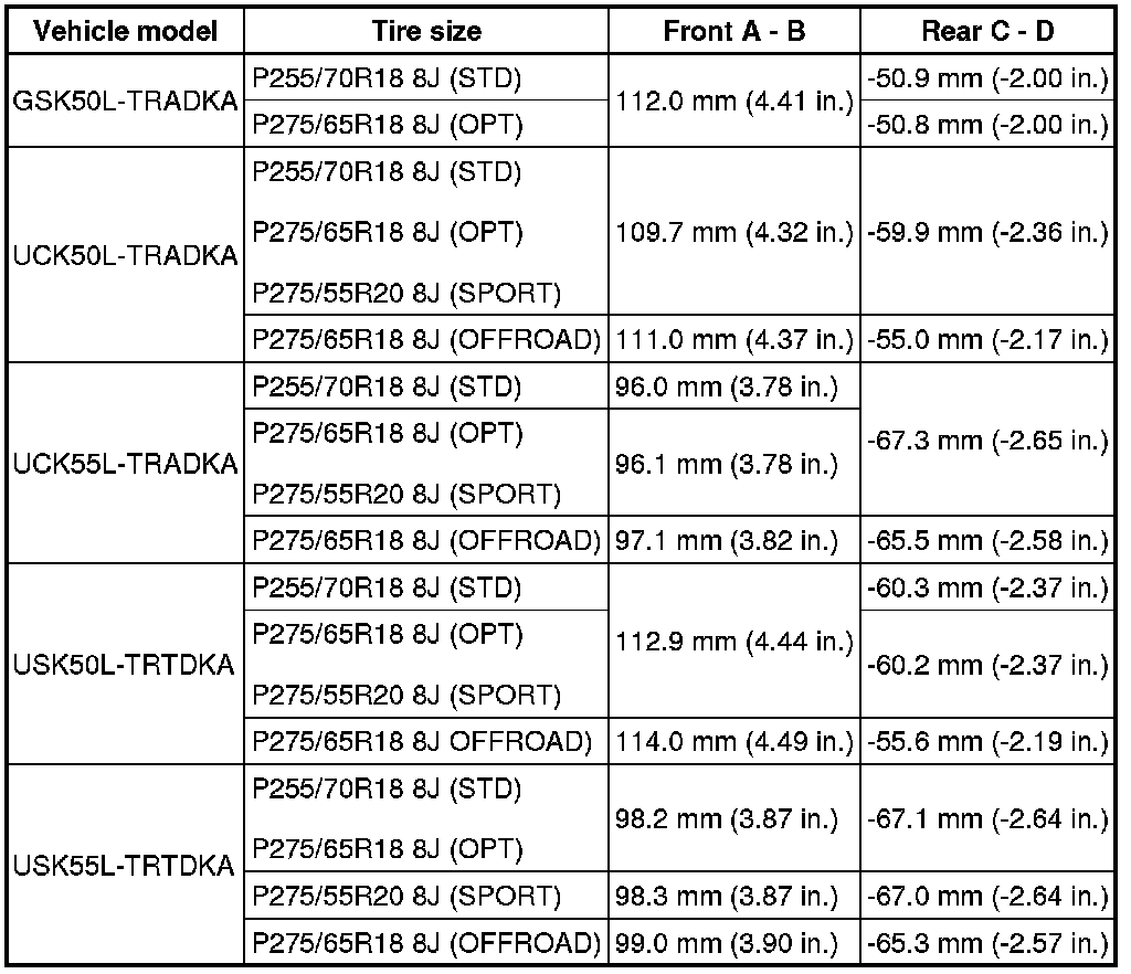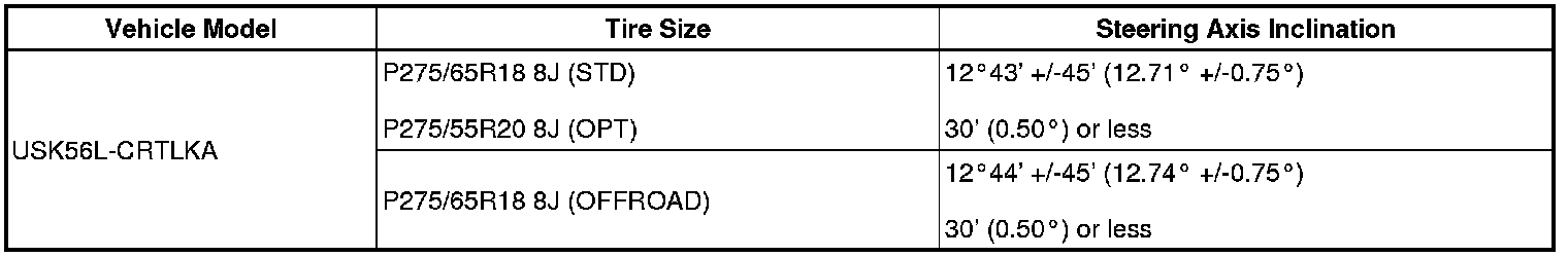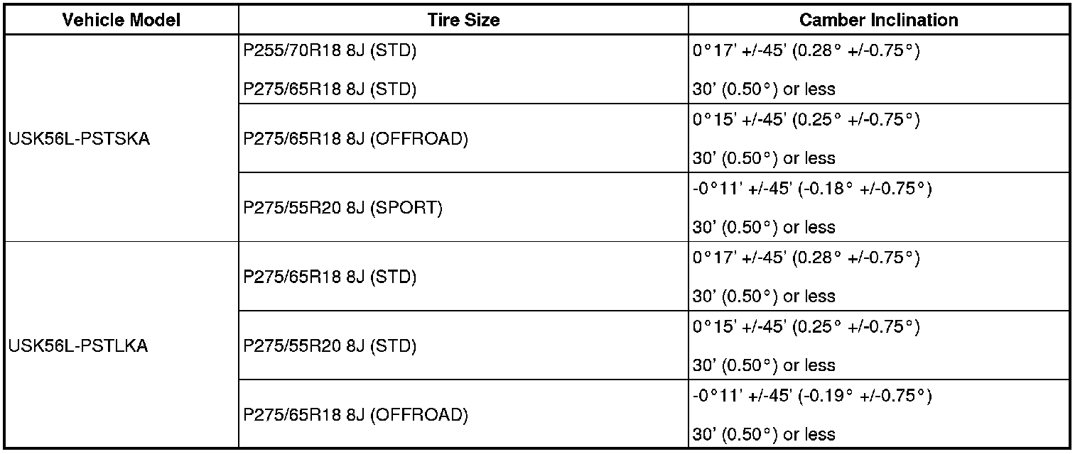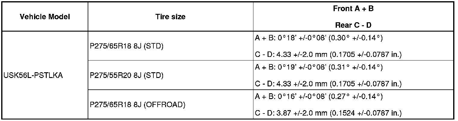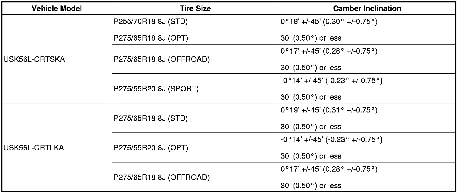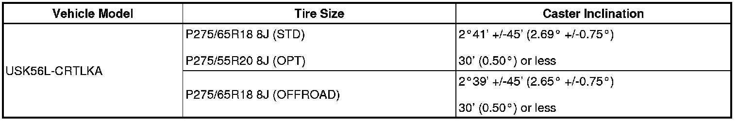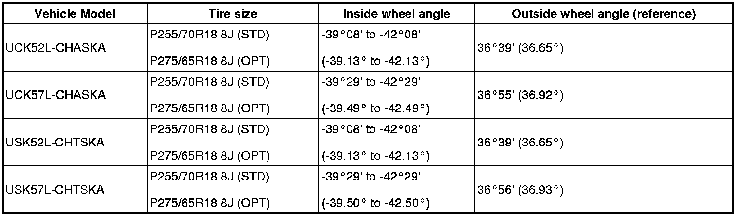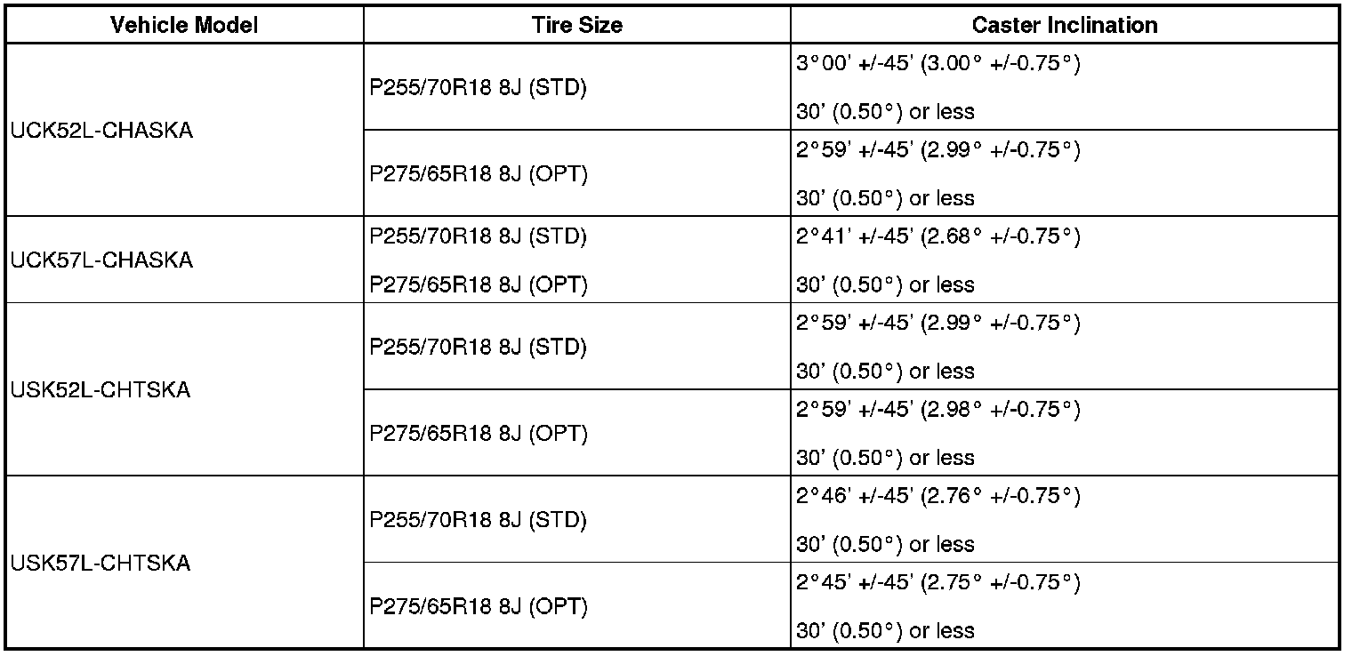 (1) Find the wheel alignment standard value applicable for the particular model.