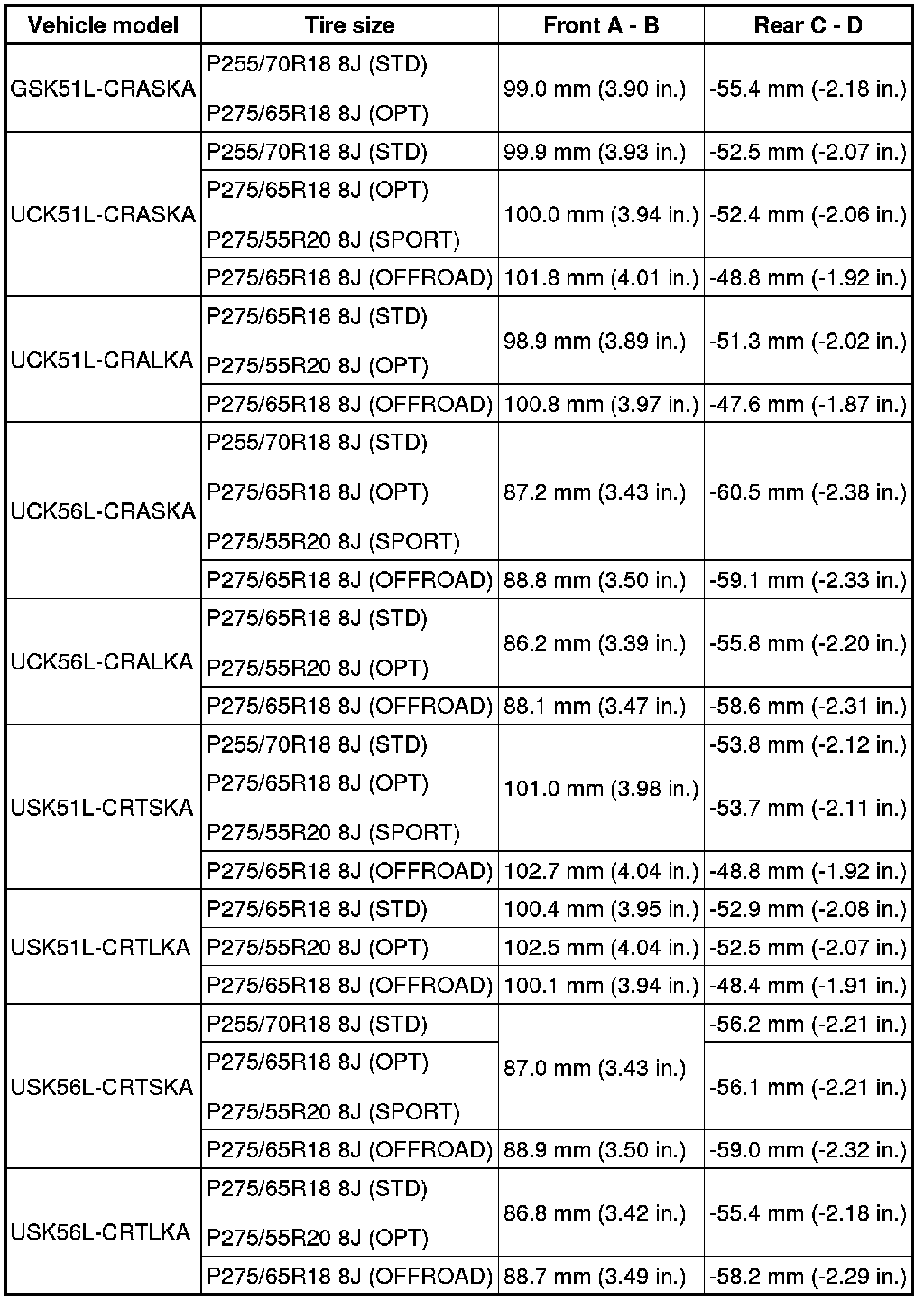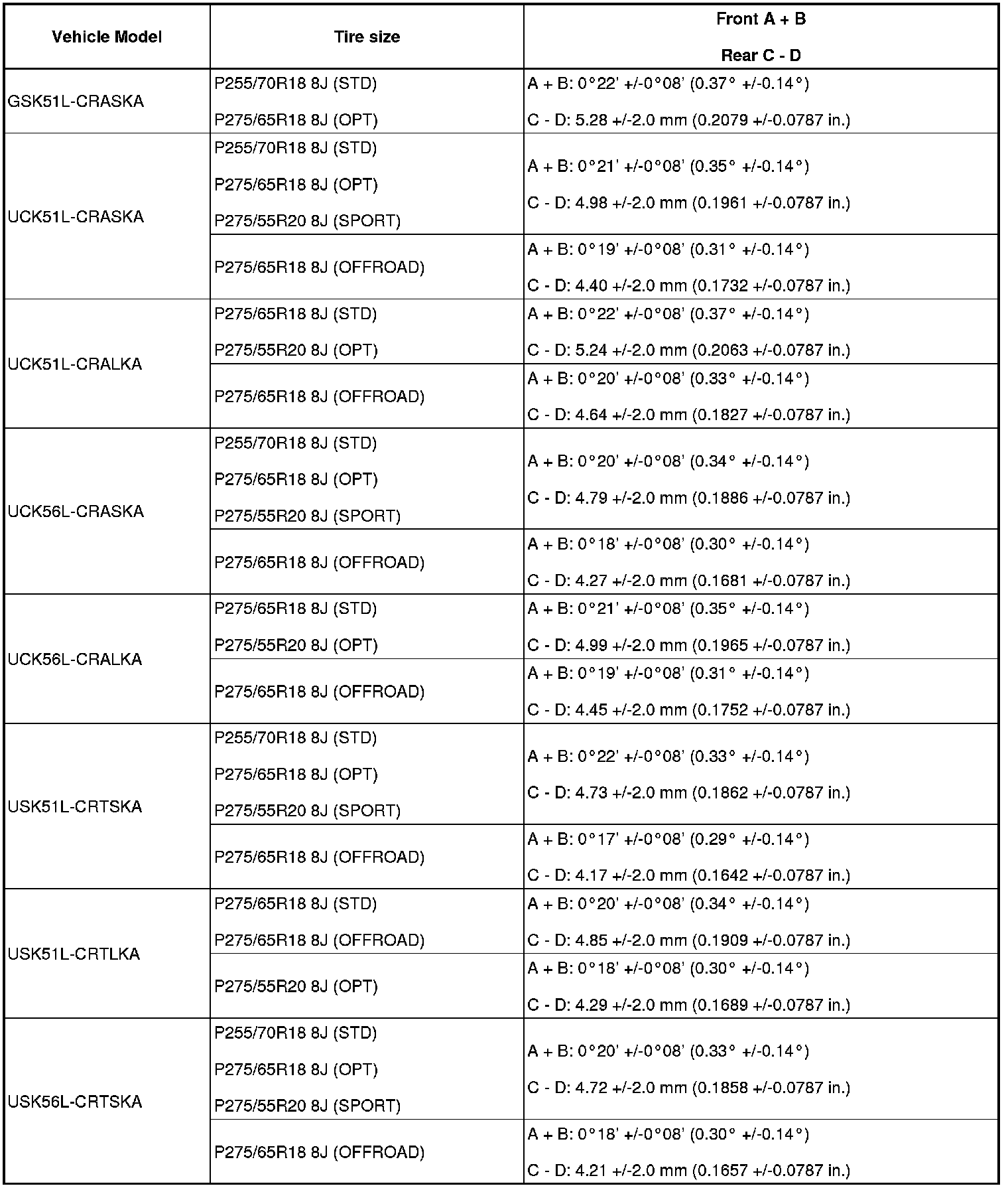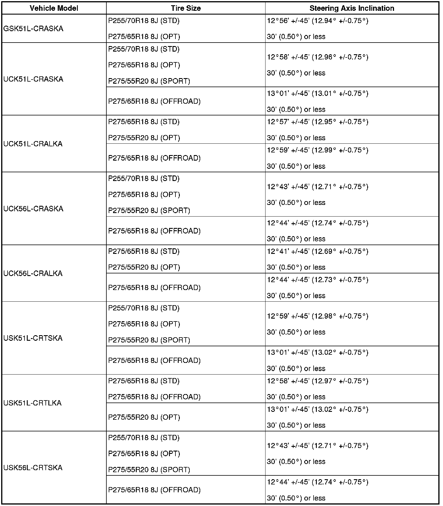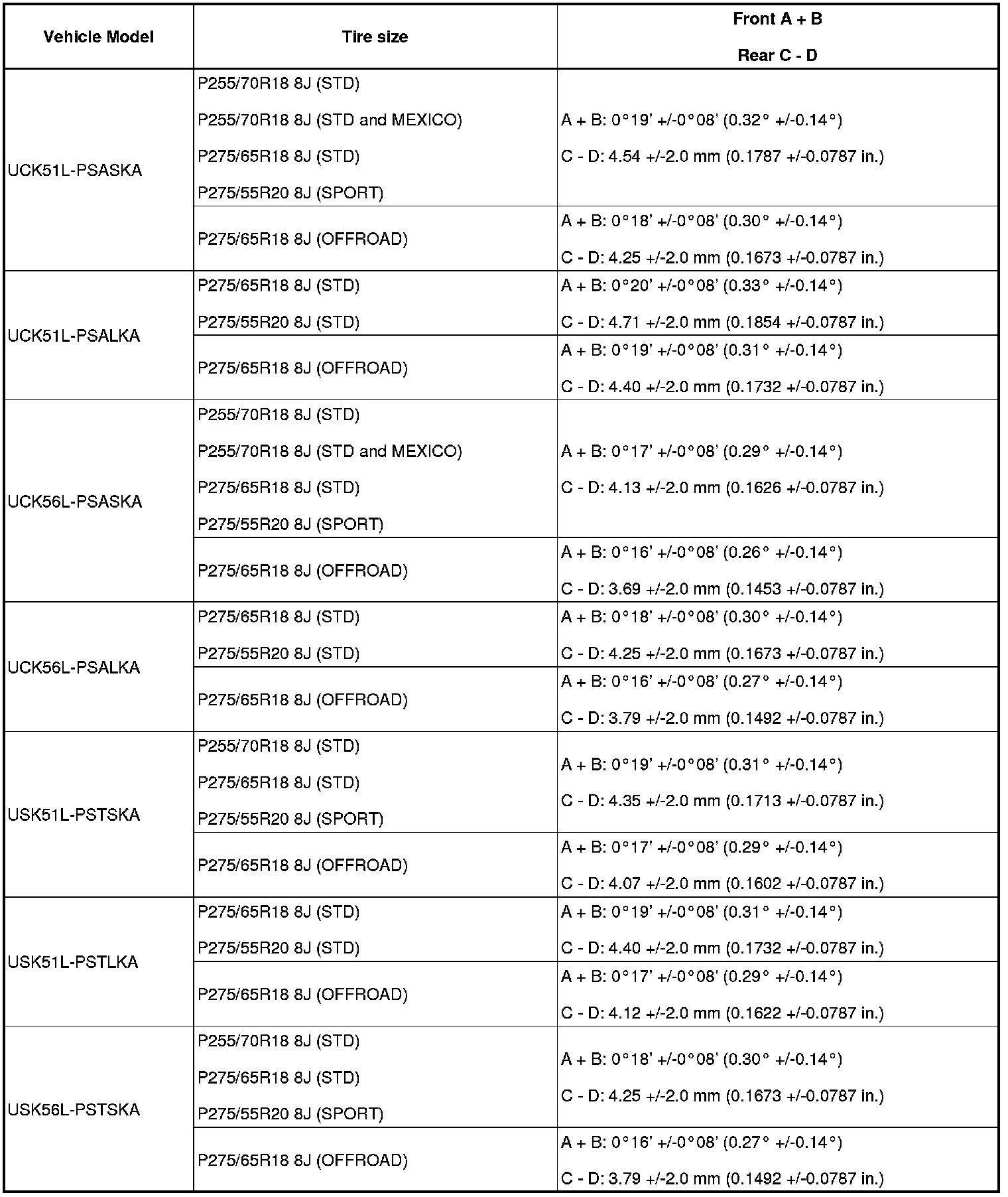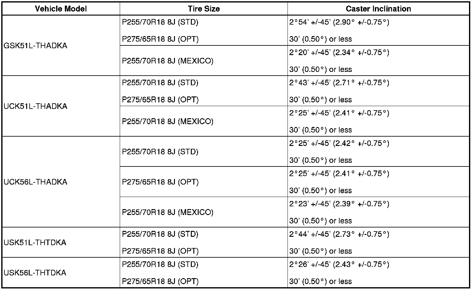 (1) Find the wheel alignment standard value applicable for the particular model.