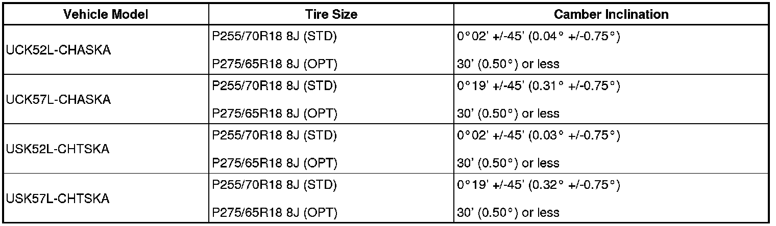 Standard camber inclination (unloaded vehicle):