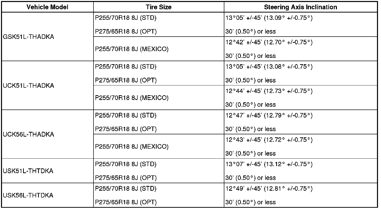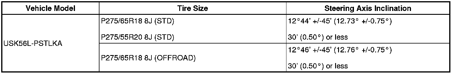 Standard steering axis inclination (unloaded vehicle):