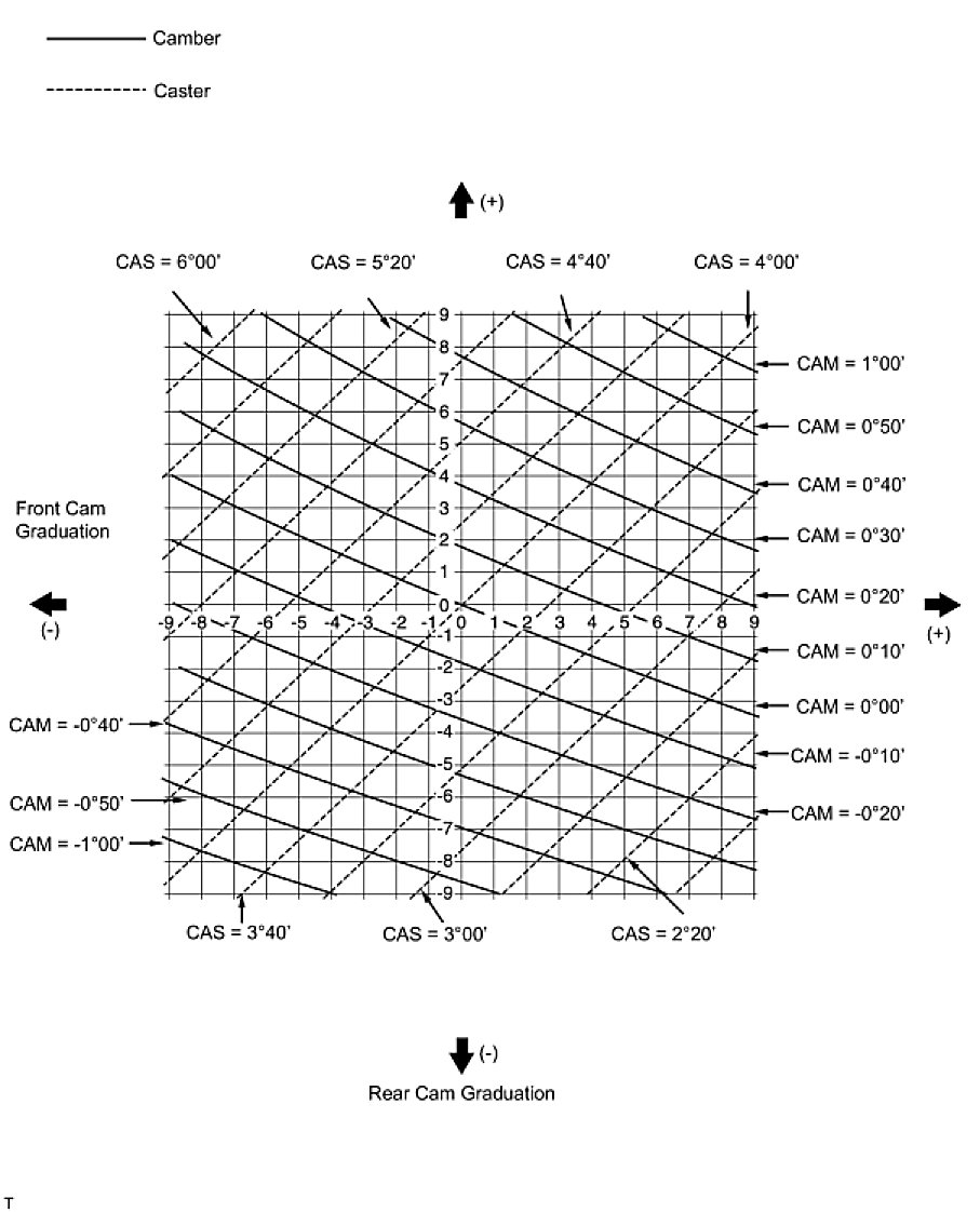 (4) As shown in the chart, read the distance from the marked point to 0, and adjust the front and/ or rear adjusting cams accordingly.