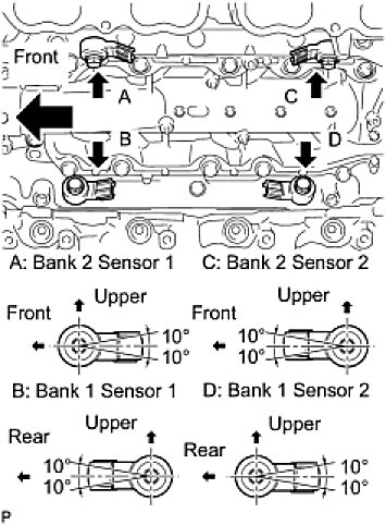 (a) Install the 4 sensors with the 4 bolts so that the sensors are angled as shown in the illustration.