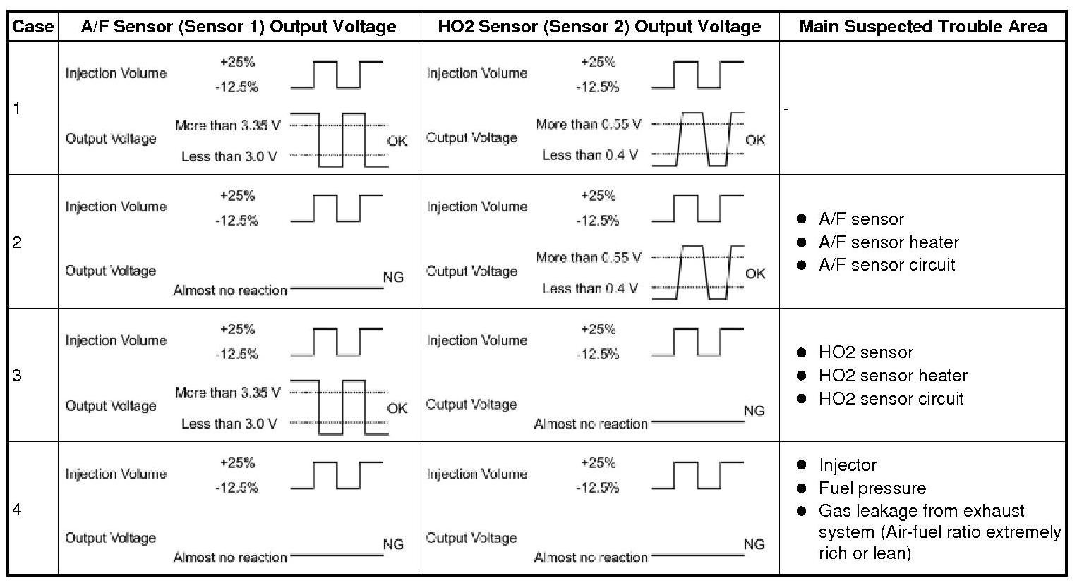 - Each sensor reacts in accordance with increases and decreases in the fuel injection volume.