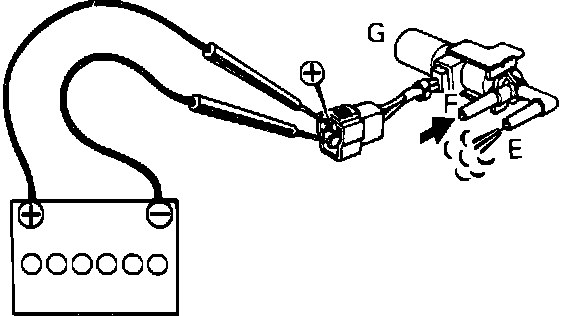 4. Connect battery to valve electrical terminals using suitable jumper wires, then blow air into port F, Fig. 19. Air should be discharged through port E.