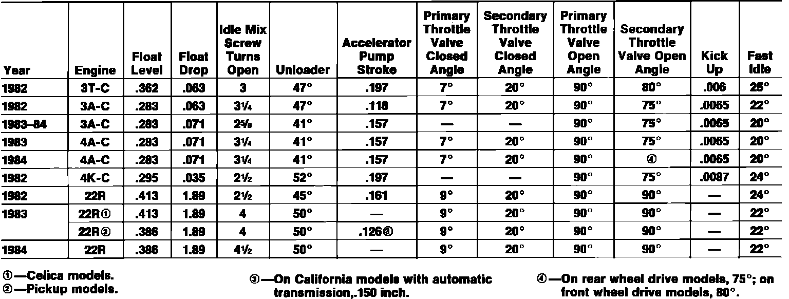 Carburetor: Specifications
