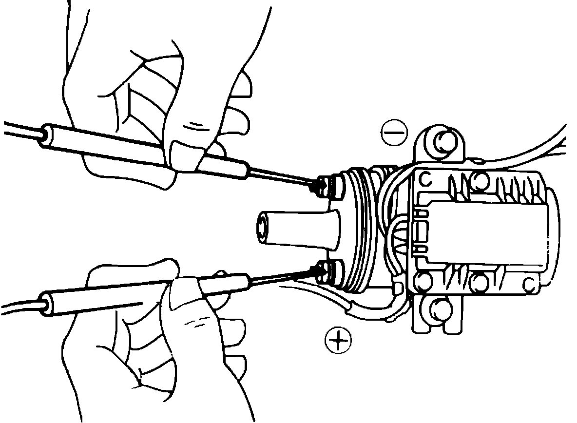 Fig. 2 Checking ignition coil primary resistance (brown wire is positive, black wire is negative):