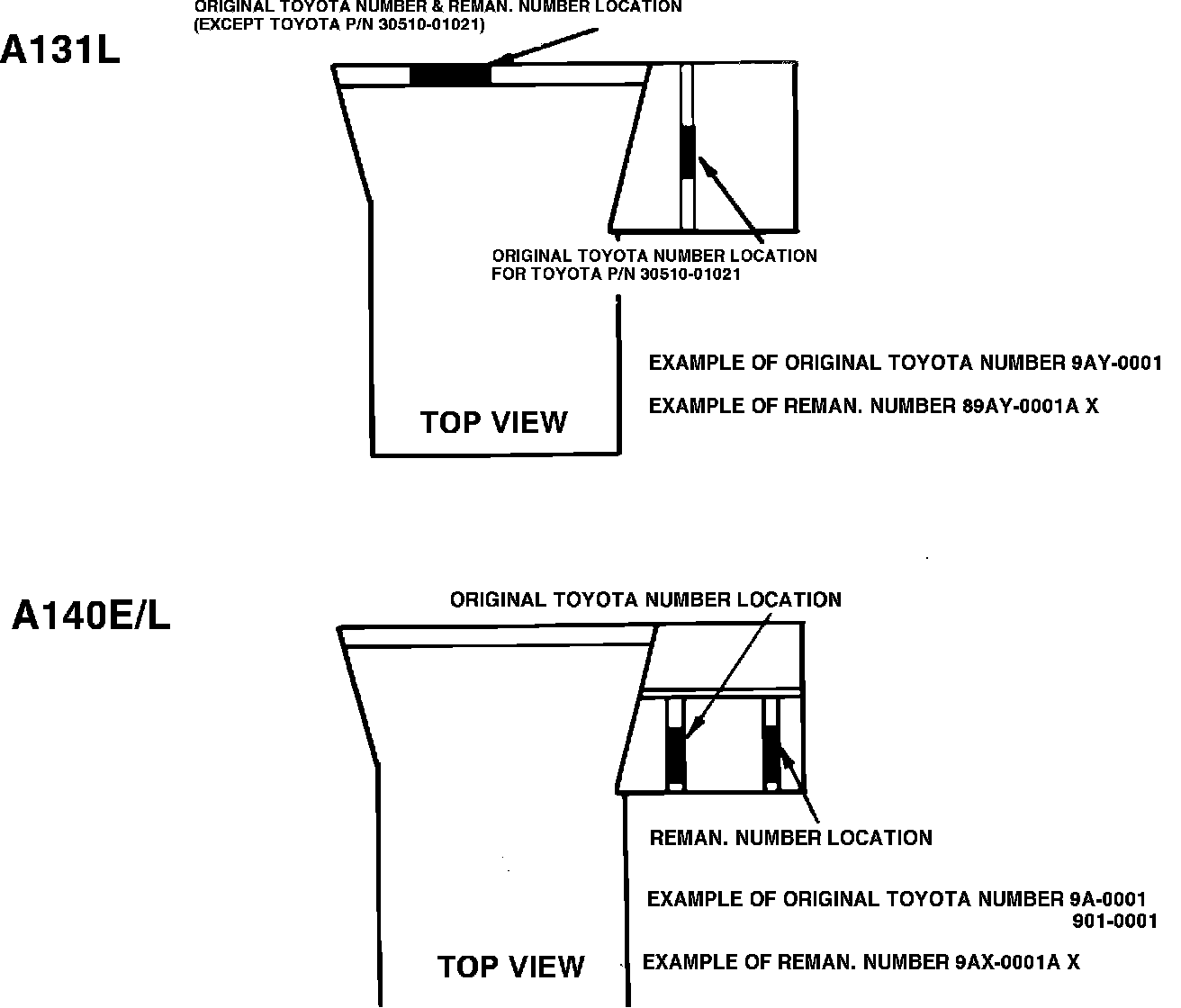 The transmission numbers must be included on the AUTOMATIC TRANSMISSION CORE INFORMATION/CREDIT REQUEST FORM when using the automatic transmission reman. program.