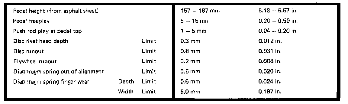 W58 5-spd M/T, Clutch Clearances: