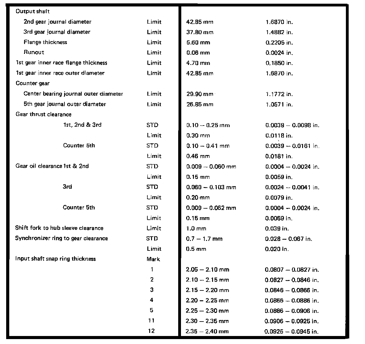 W58 5-spd M/T, Output Shaft/Gear Thickness Clearance: