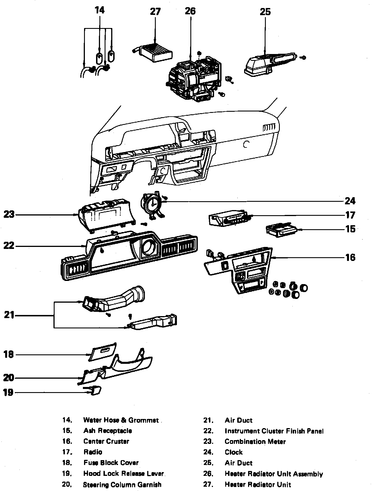 Fig. 6 Exploded View of Instrument Panel And Heater Assembly, Less Automatic Air Conditioning.: