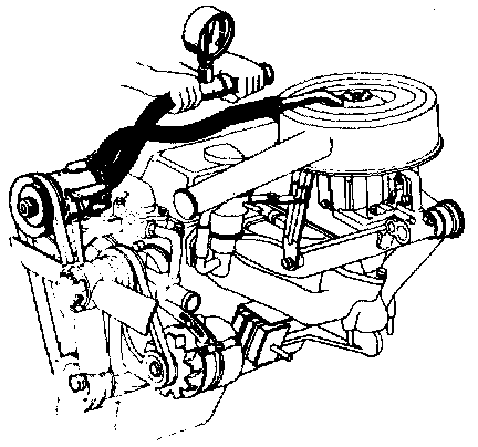 d. On all 1975-82 engines, if tester indicates in the red zone, the pump assembly is defective.