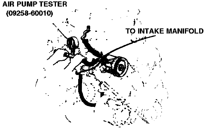 e. On 1969-74 engines, if tester indicates in the red zone close relief valve outlet with hand and recheck. If tester indicates in the green zone, the relief valve is defective. If tester still indicates in the red zone, the air pump assembly is defective.