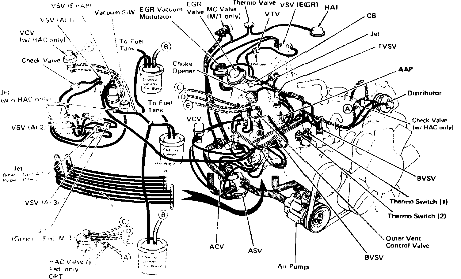 Fig. 11 Emission control system & engine compartment reference diagram.: