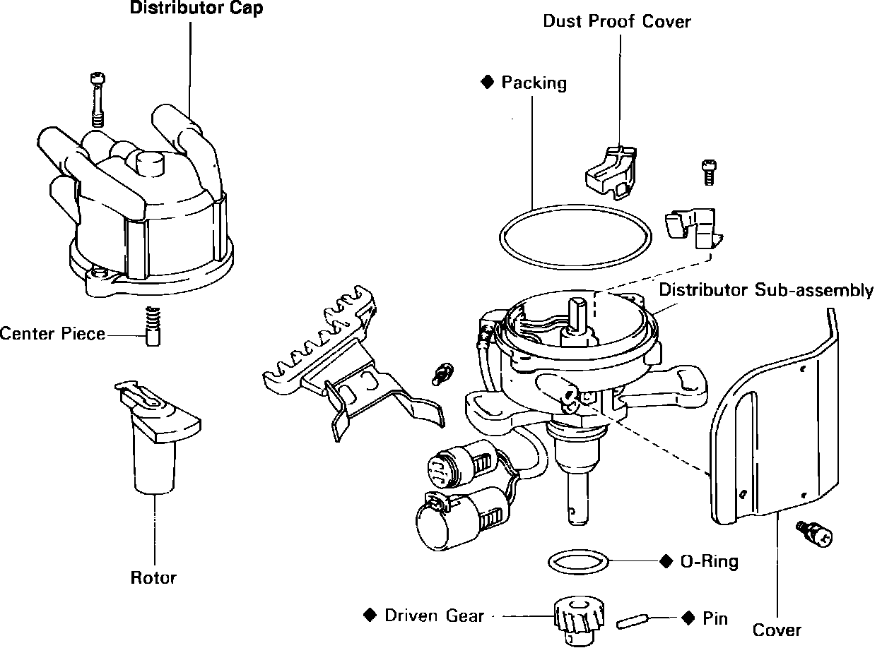 Fig. 23 Electronically controlled distributor w/external coil exploded view (typical):