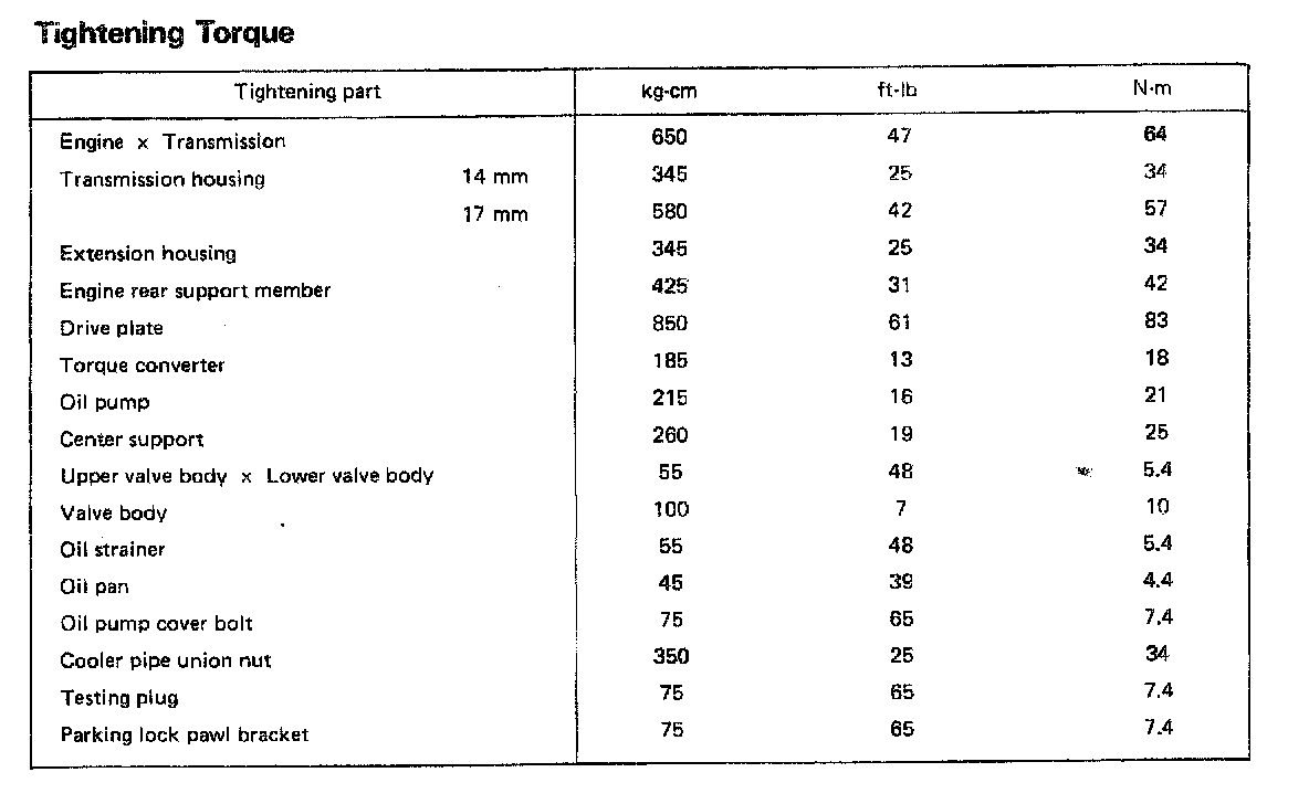 A40D 4-spd A/T, Transmission Torque: