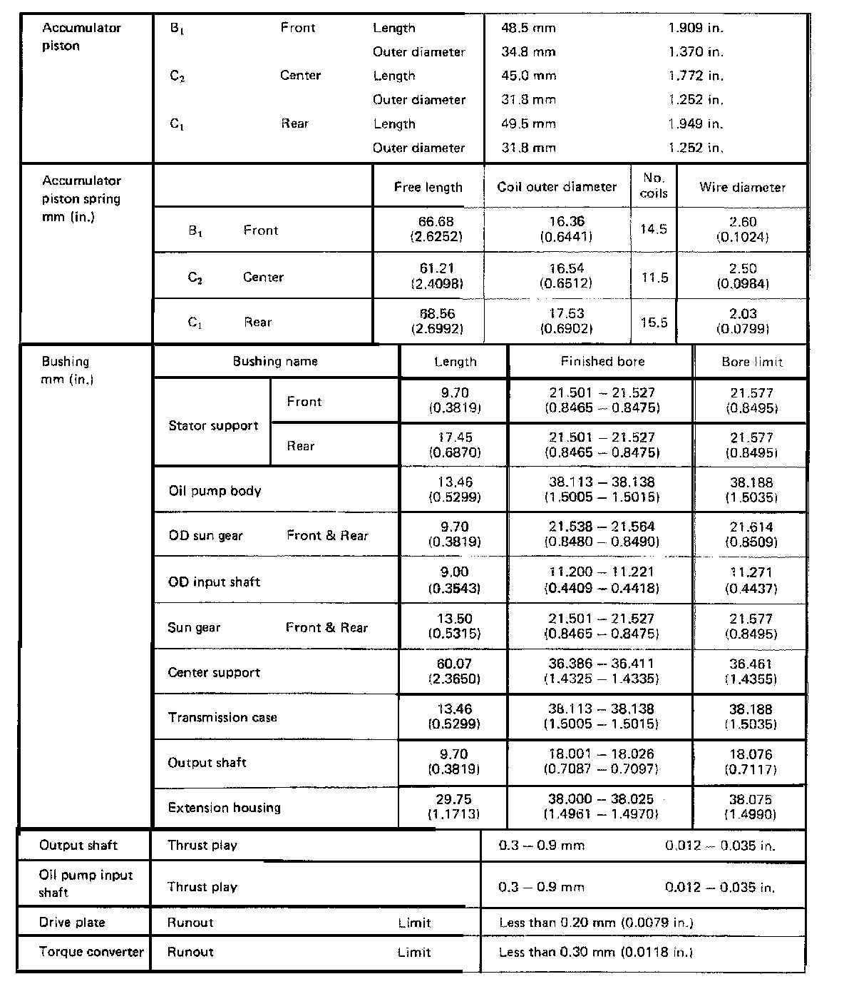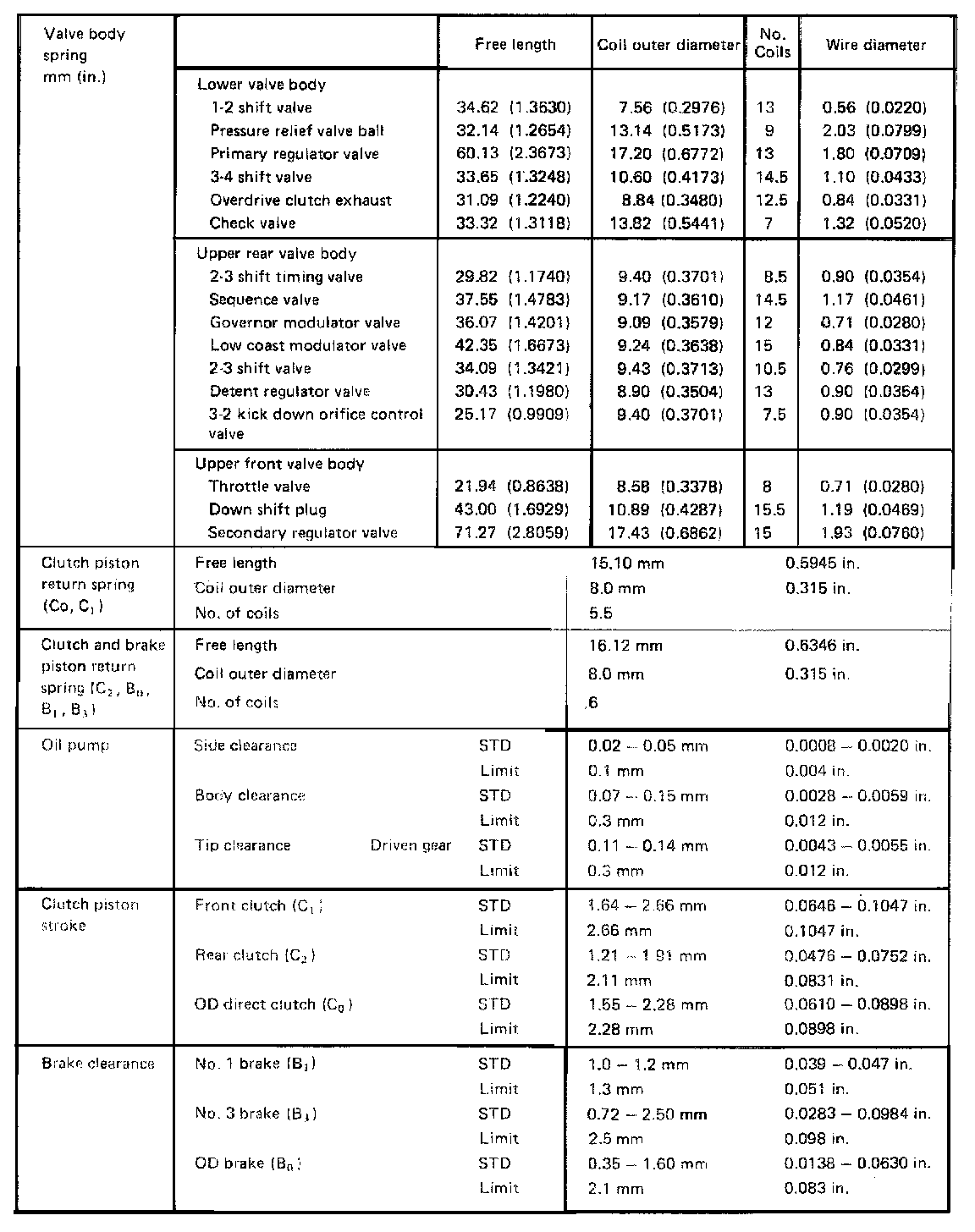 A40D 4-spd A/T, Valve Body/Clutch Clearances: