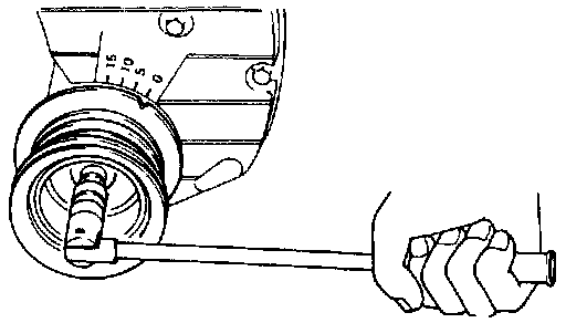 1. Turn the crank pulley until the timing mark is aligned with the TDC mark as shown.