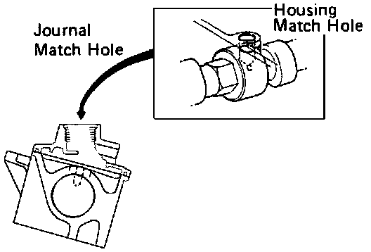 3. Make sure the match hole on the No.2 journal of the cam housing is aligned with that of the cam as shown. If not, turn the crank one full turn and recheck.