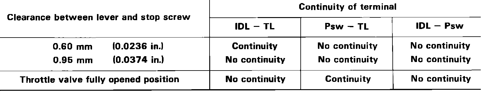 Throttle Position Switch: Testing and Inspection