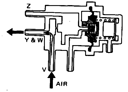 3. Disconnect hose from port "S" and check that a large amount of air flows from port "Z" to port "Y".