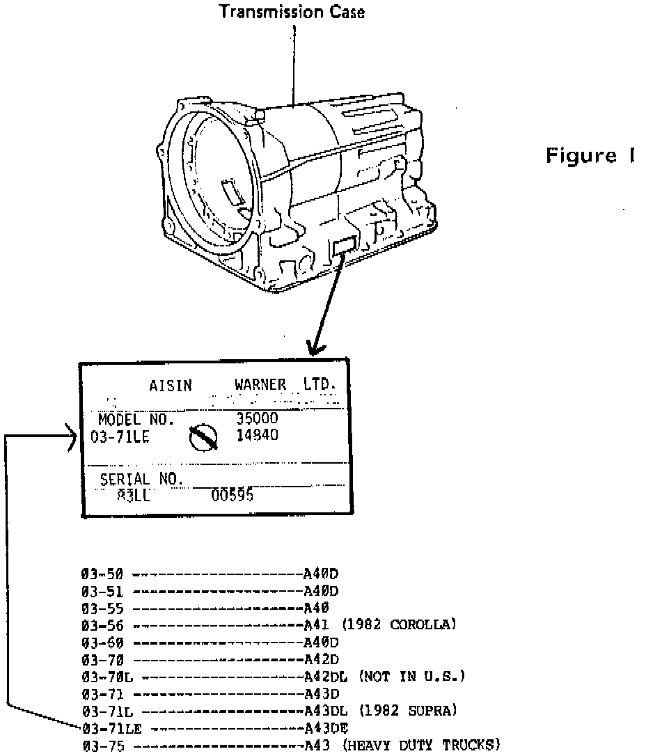 The following information will help determine transmission year and type. This is extremely important when purchasing parts. The Identification tag is located above the pan rail on the driver's side of transmission. (See Figures 1 & 2)