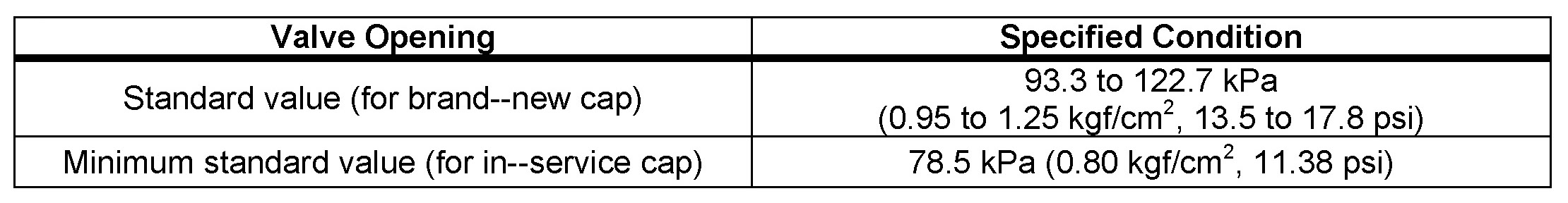 Stop pumping when the valve opens and read the gauge. The gauge must be within the standard values listed below when the pressure valve opens. The cap is considered OK when the pressure holds steady or falls very slowly, but holds within the standard values listed below for one minute.