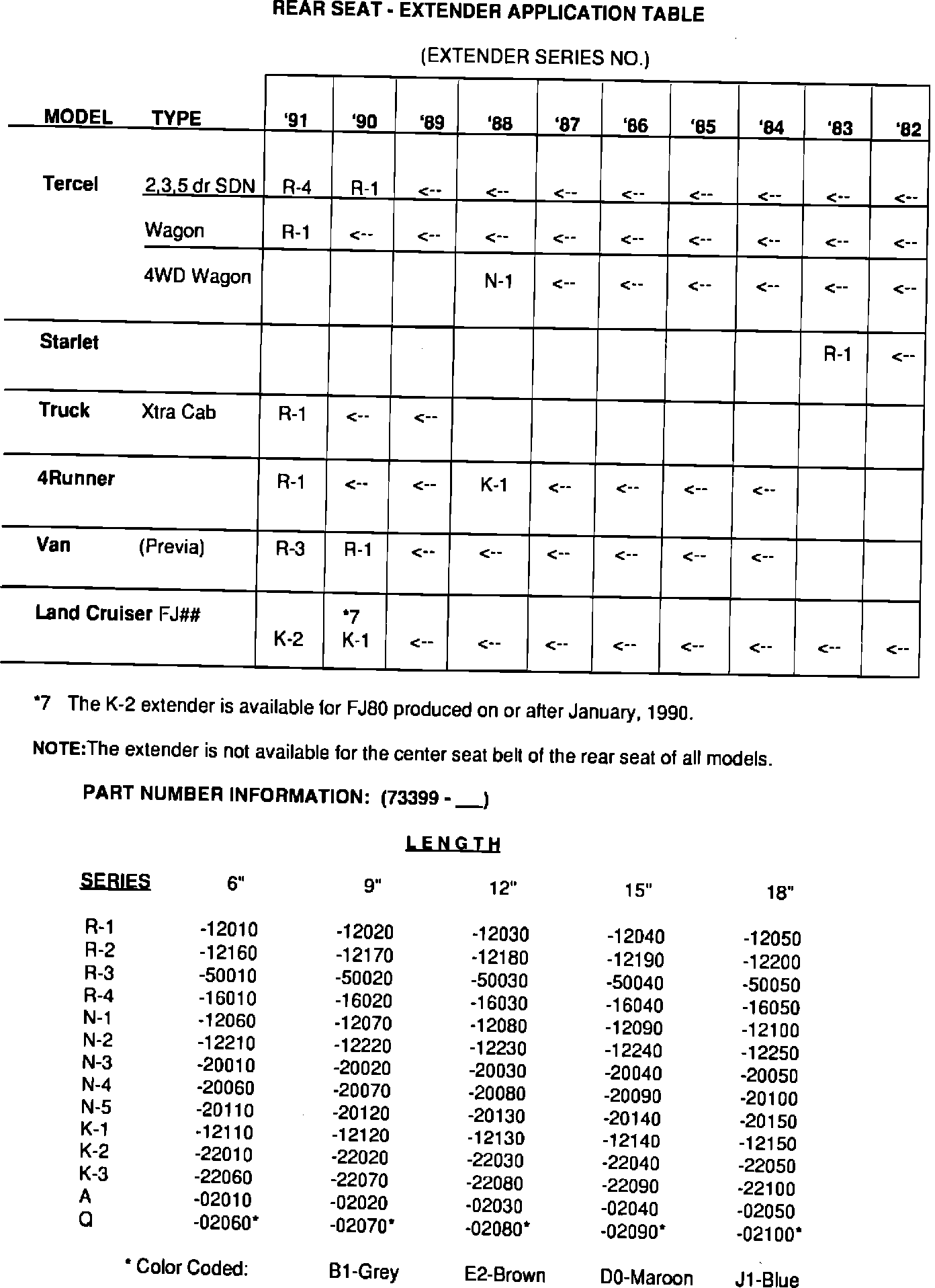 ^ Seat Belt Extender Application/Part Number Chart