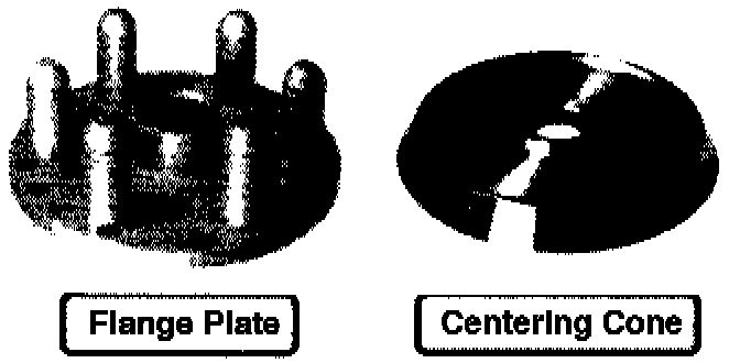 1. Use the centering cone and flange plate combination on all five and six lug steel and alloy Toyota wheels. On four lug and other wheels, use the standard centering cones that come with your balancer.