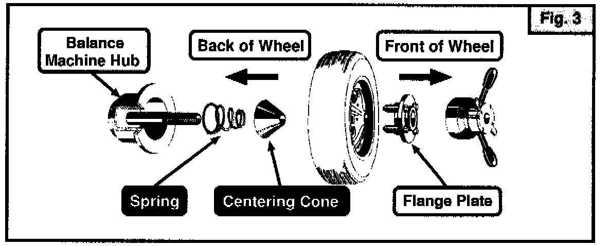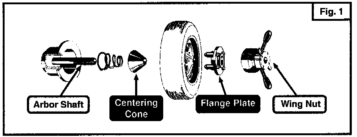 The Haweka Flange Plate uses the wheel lug holes and a centering cone to center the wheel on the balancer arbor. As the wing nut is tightened, equal pressure is automatically applied to each stud forcing the wheel to perfectly mount on the balancer (see Figure 1).