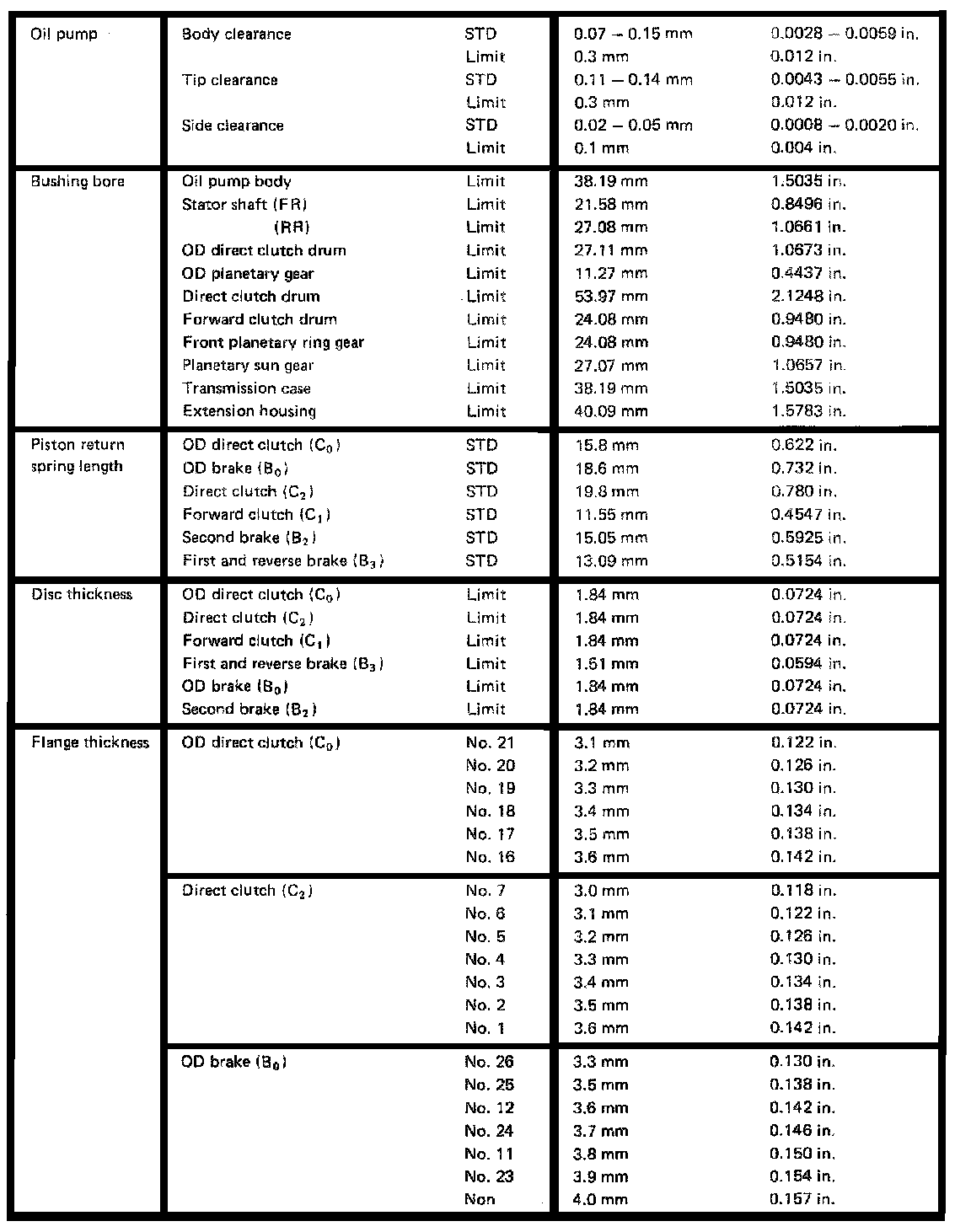 A340E 3-spd O/D A/T, Clearance/Tolerances: