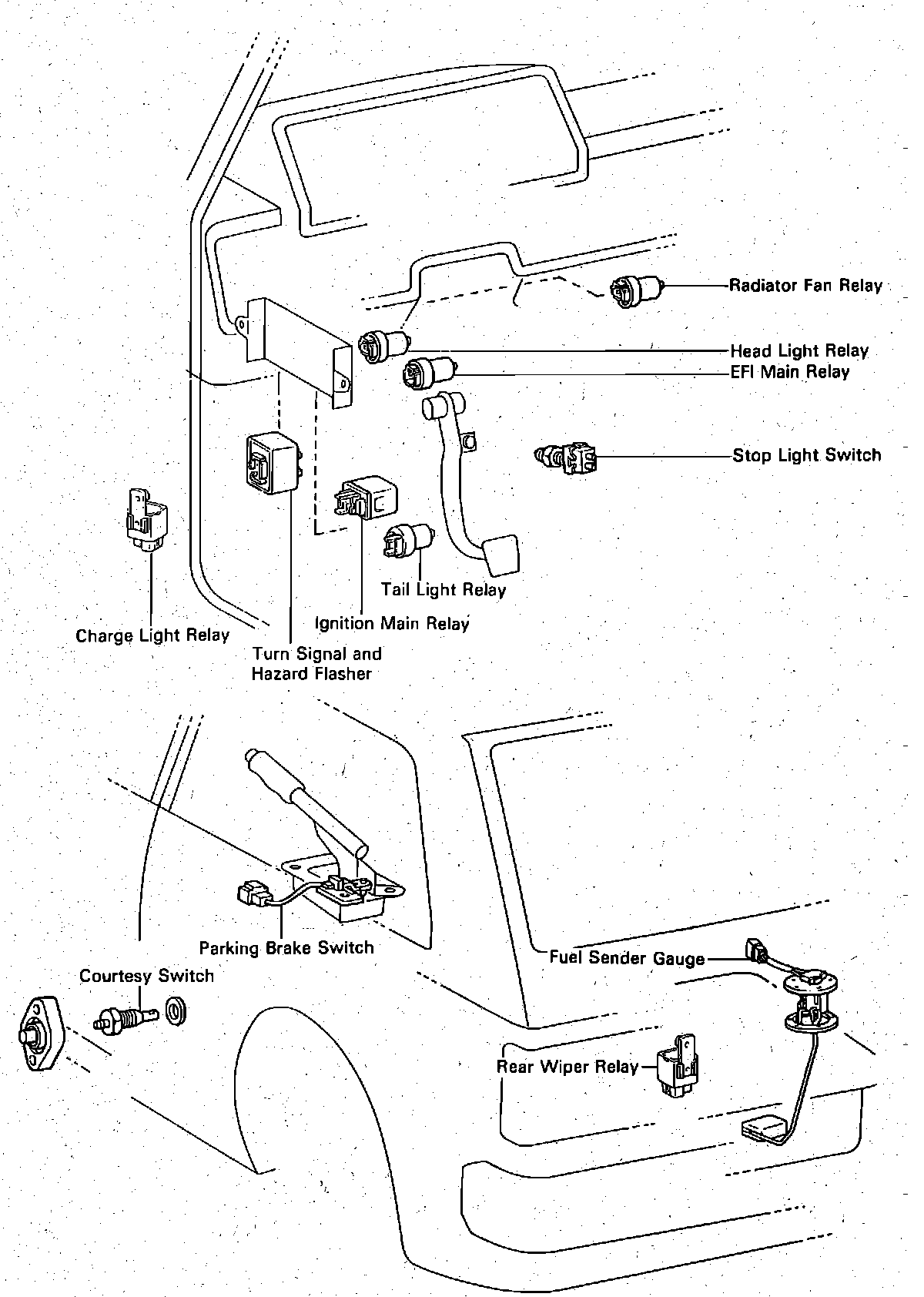 Passenger & Luggage Compartment Switch & Relay Locations.: