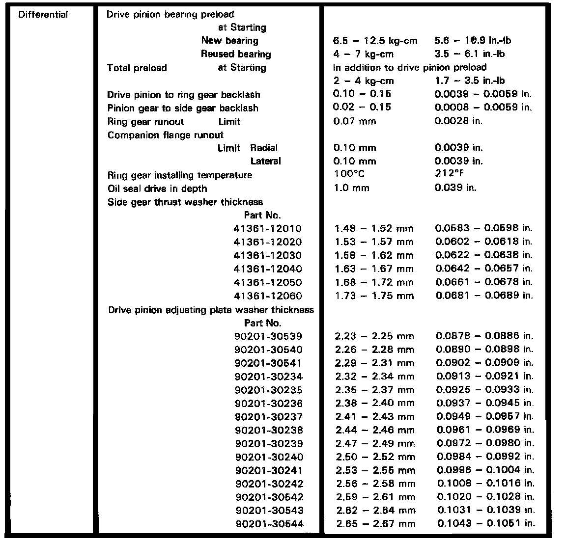 Conventional Rear Differential, Preloads/Gear Thickness: