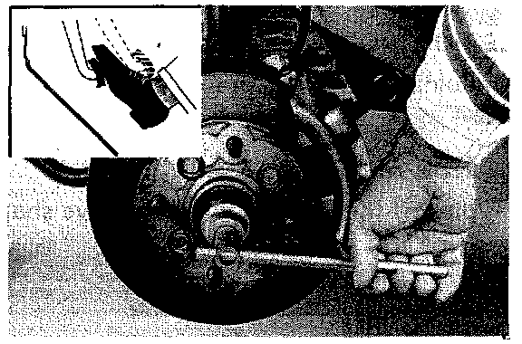 5. Remove the two bolts holding the brake caliper to the axle hub.