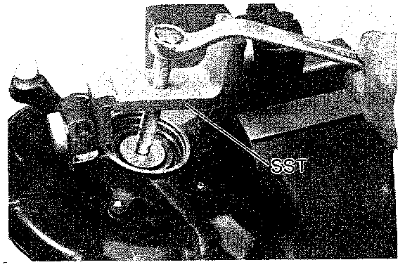 17. Remove dust deflector. Using SST #09308-00010 or equivalent, pull the oil seal out of the axle hub.