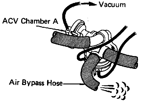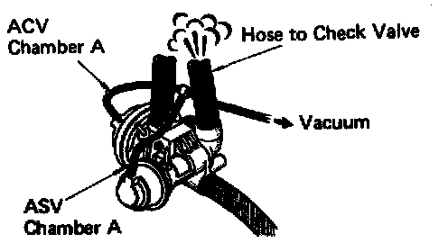 8. Apply vacuum directly to air control valve chamber "A" and air switching valve.