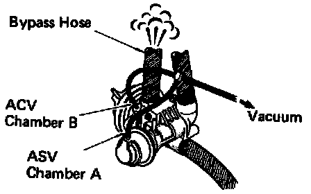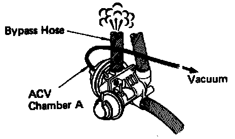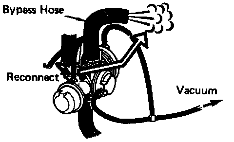 4. Disconnect then reconnect vacuum hose from air by-pass valve. Compressed air should be momentarily discharged from air by-pass hose.