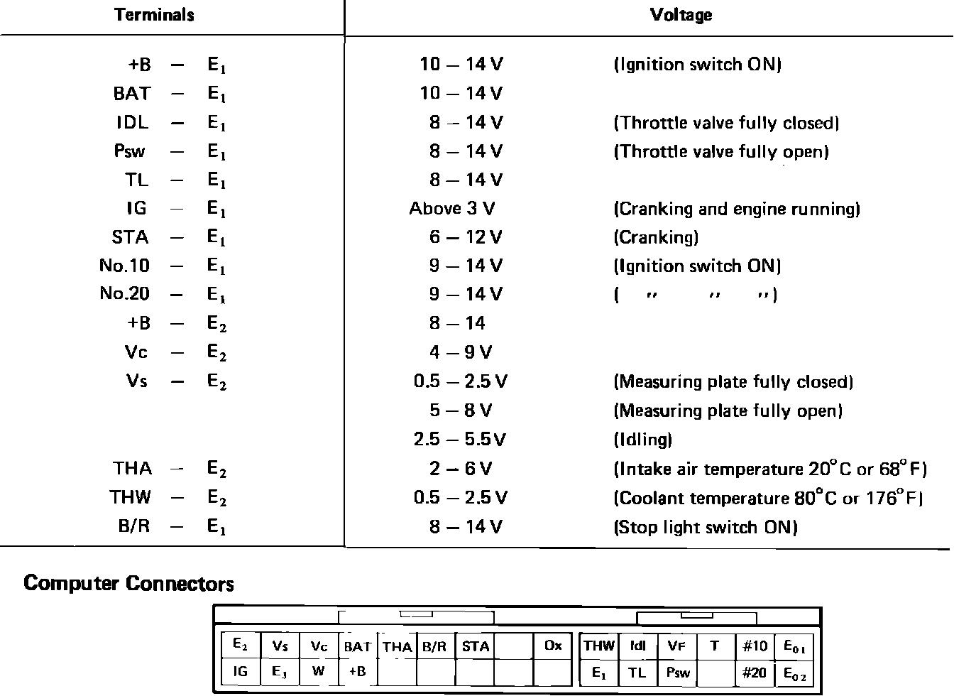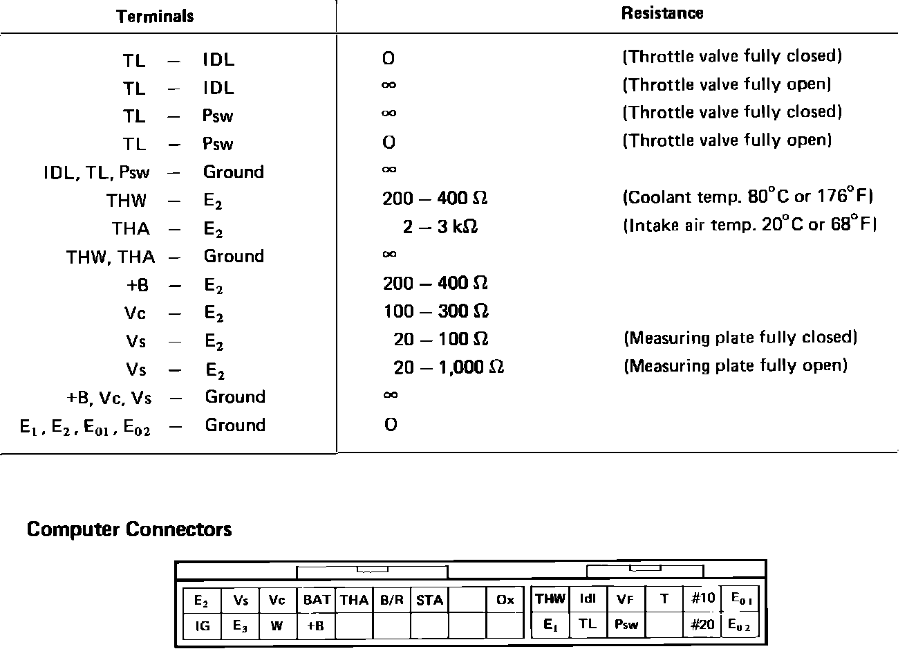 The following procedure allows separate inspection of each EFI circuit. This test is meant to be performed in conjunction with the troubleshooting, self diagnostic and component test procedures, and allows system wiring harnesses to be checked from the EFI computer connector.