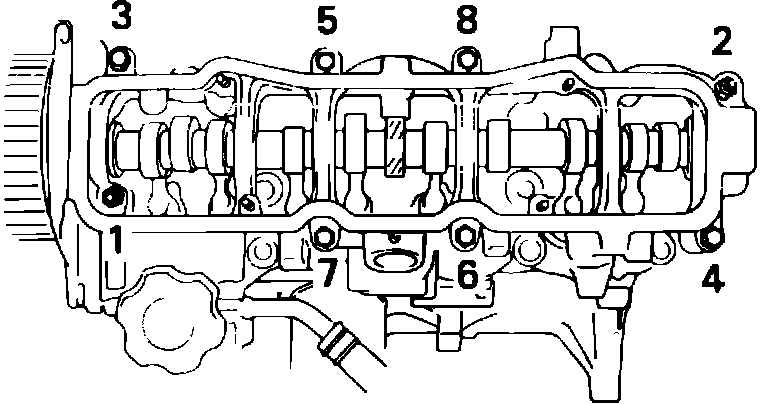 Fig. 10 Camshaft housing bolt loosening sequence. 2S-E engine: