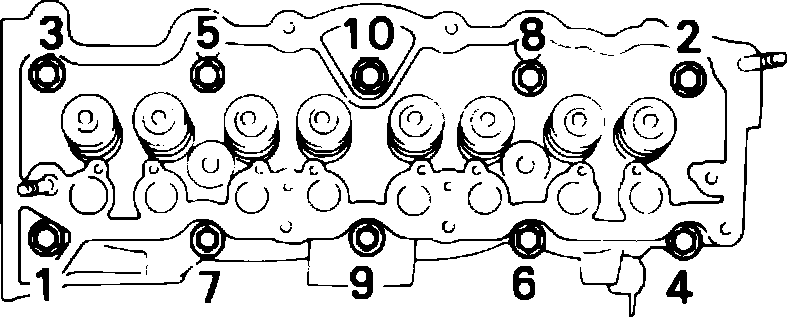 Fig. 11 Cylinder head bolt loosening sequence. 2S-E engine: